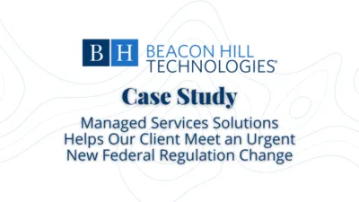 Our client told us that this project could not have been accomplished without the assistance of our project resources. Beacon Hill Technologies completed the project on time, within the projected budget, and to the client’s satisfaction. The successful Windows 10 rollout has significantly improved our client’s goals, demonstrating the value of our services.